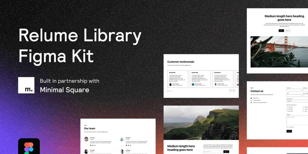 This Figma Library was built by the community for the community. After many requests for a Figma version of Relume Library (world’s largest Webflow component library), we partnered with Minimal Square
