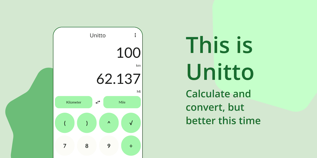 Unitto — unit converter and calculator mobile app for Android. Key features: • Free, forever • Smart units search • Adaptive units sorting algorithm • Bulk convert units • Favorite units • Very custom