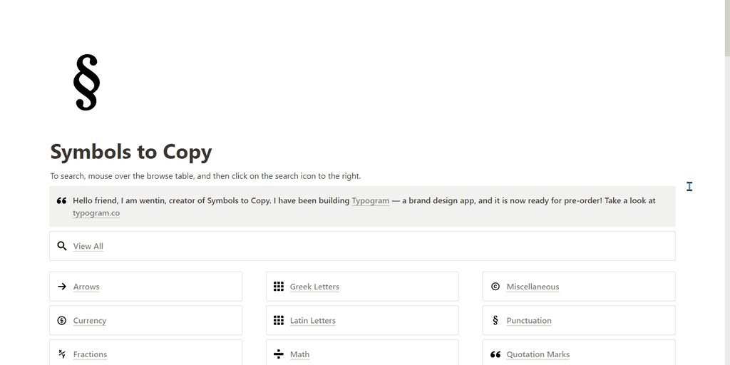 Symbols to Copy - Search difficult-to-type symbols and copy to clipboard | Product Hunt
