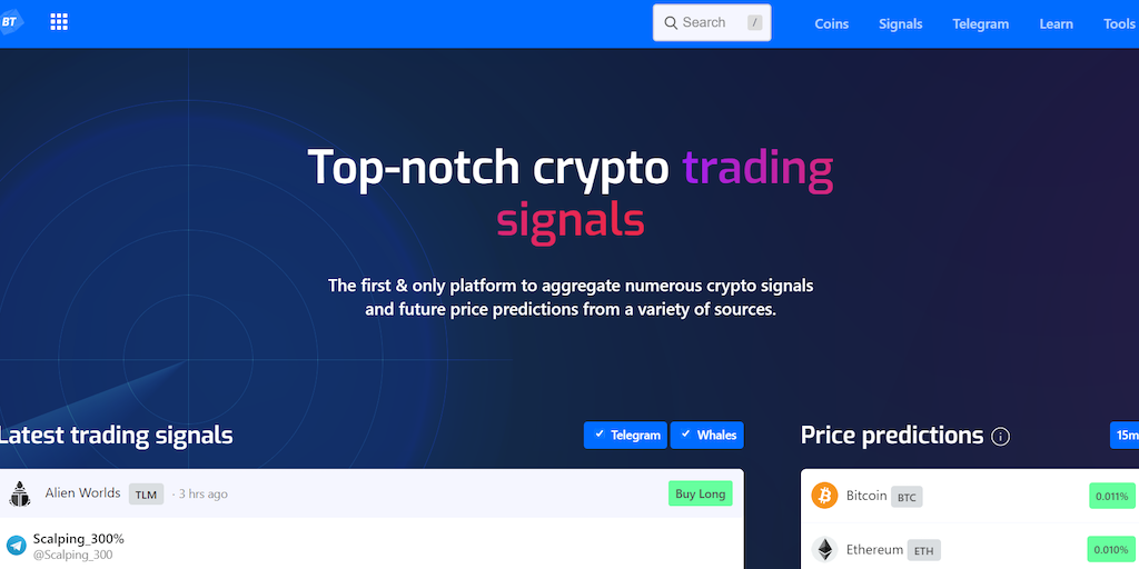 The first & only platform to aggregate numerous crypto signals and future price predictions from a variety of sources.