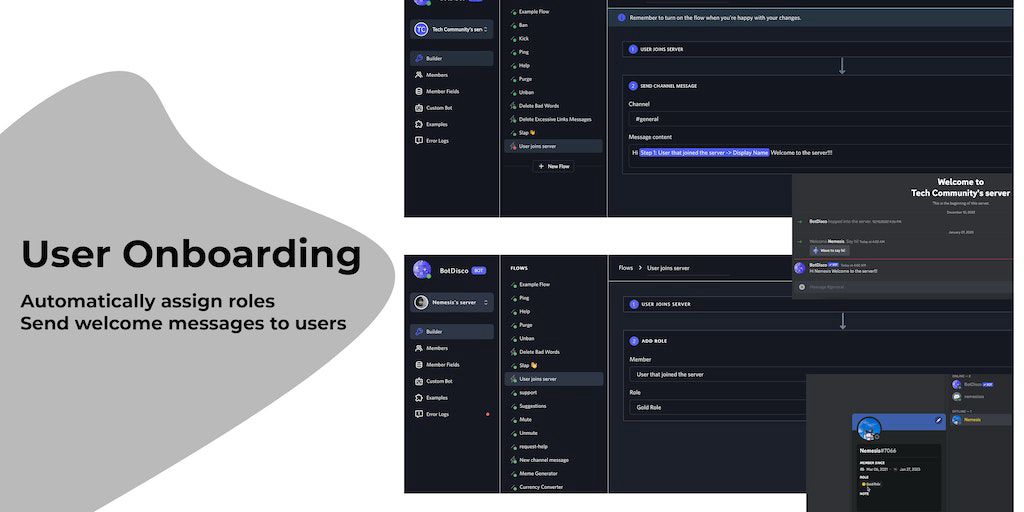 BotDisco, a no code bot builder for Discord. It uses triggers and actions, so your bot can be highly customizable for your community.