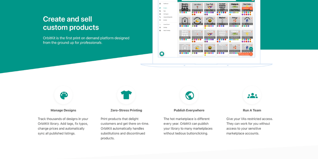 OrbitKit is a free online database for your library of Print on Demand designs and product listings. Automatically sync changes to titles, descriptions and pricing. Seamless fulfillment of orders at y