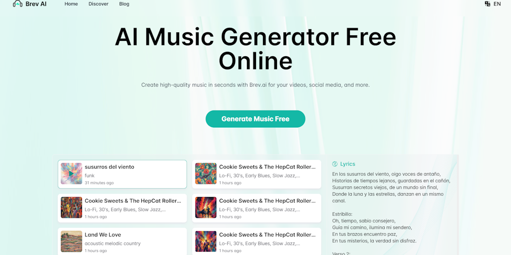 Brev.ai is an AI music generator that turns text into music using AI technology. Create high-quality songs and instrumentals effortlessly, perfect for videos, social media, and more. Just enter your t