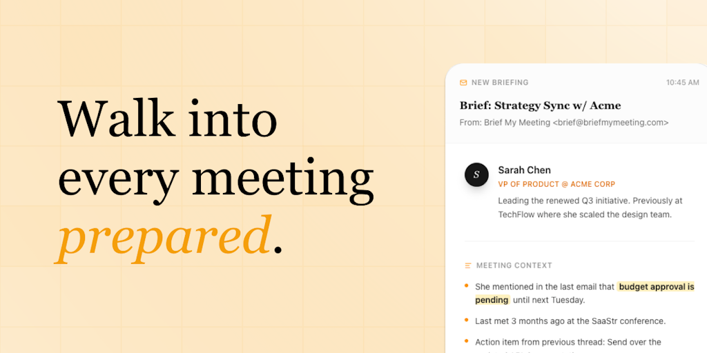 Brief My Meeting: AI meeting briefs delivered to your inbox. Open source | Product Hunt