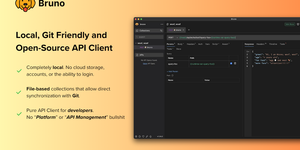 Bruno - Reinventing the API Client | Local, Native Git, Open Source | Product Hunt