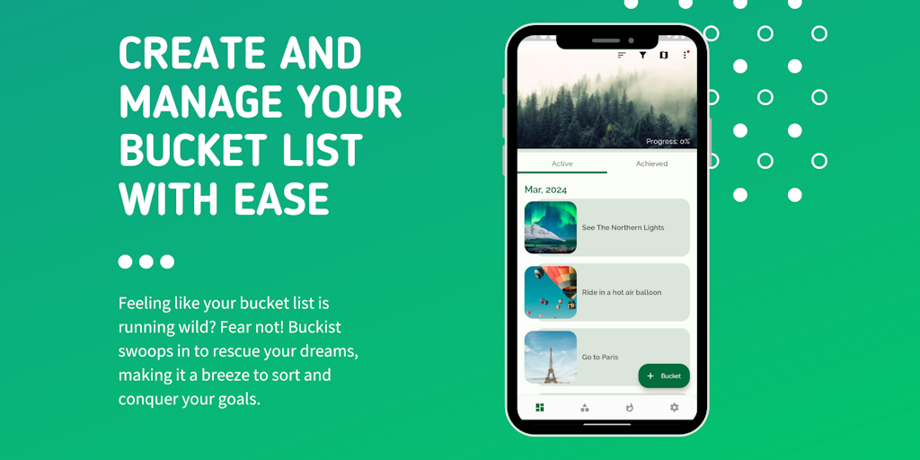 Buckit is a mobile app that helps you create, manage, and achieve your bucket list. It's essentially a goal-setting tool with a specific focus on those long-term dreams and aspirations you want to acc