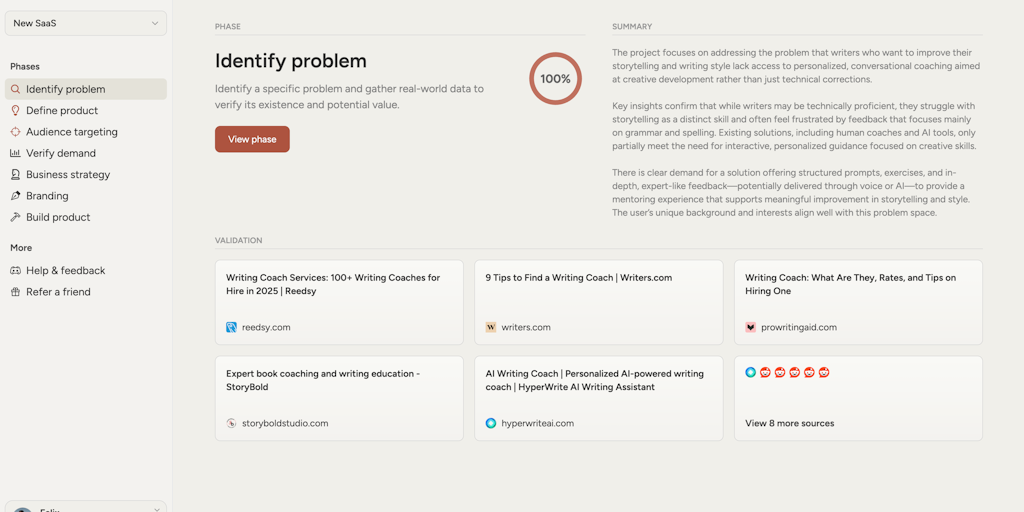 Buildpad is an AI co-founder that helps founders build products that people actually want. You'll be guided step-by-step through 7 phases, starting with finding a real problem to solve and finishing w