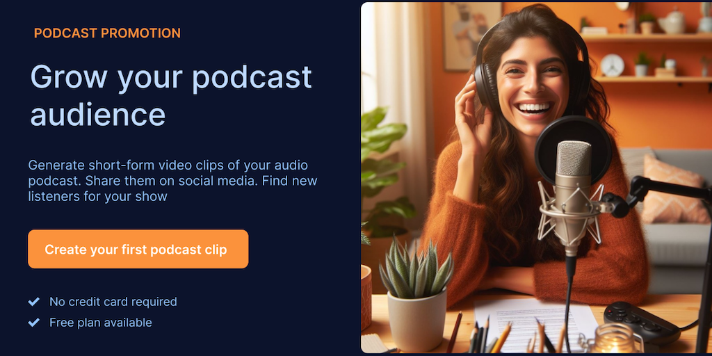 Generate short-form video clips of your audio podcast. Share them on social media. Find new listeners for your show.