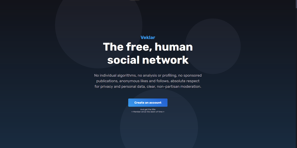 No individual algorithms, no analysis or profiling, no sponsored publications, anonymous likes and follows, absolute respect for privacy and personal data, clear, non-partisan moderation.