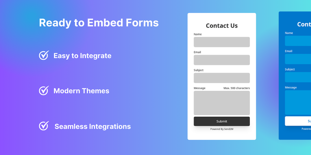 Are you tired of spending hours struggling with code just to create simple contact forms? Send2M is a no-code contact form builder makes it easy to create beautiful and functional forms in just a few