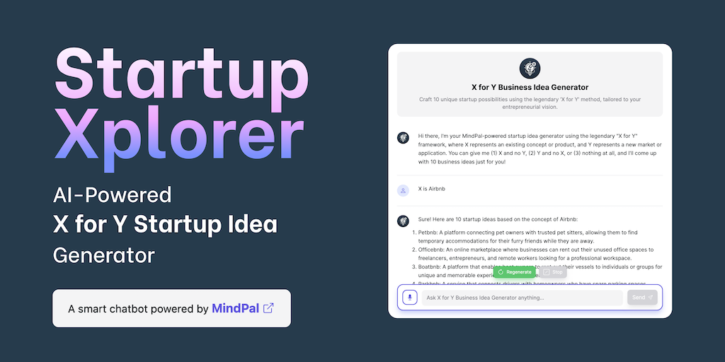 StartupXplorer - Brilliant Startup Ideas: Your Vision, Our 'X for Y' Magic | Product Hunt