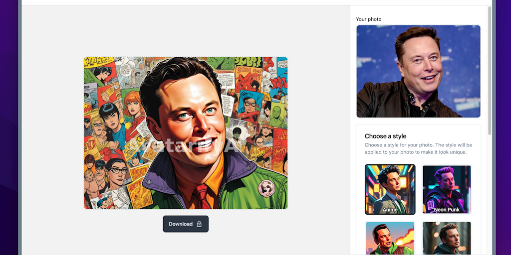 📸 Transform a photo into a high-quality, unique avatar in seconds! Choose a style, get 10 free previews daily, and download your favorite for $0.97 🤯