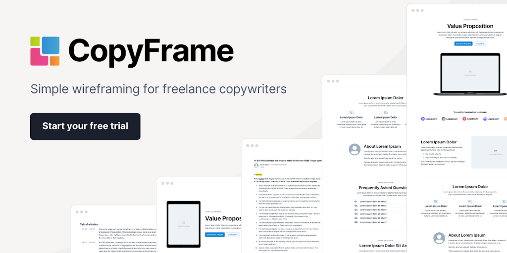 CopyFrame is a Notion-style writing and wireframing tool that lets you write copy directly into simple layouts, then share it with clients for review. So that they can visualize, approve, and implemen