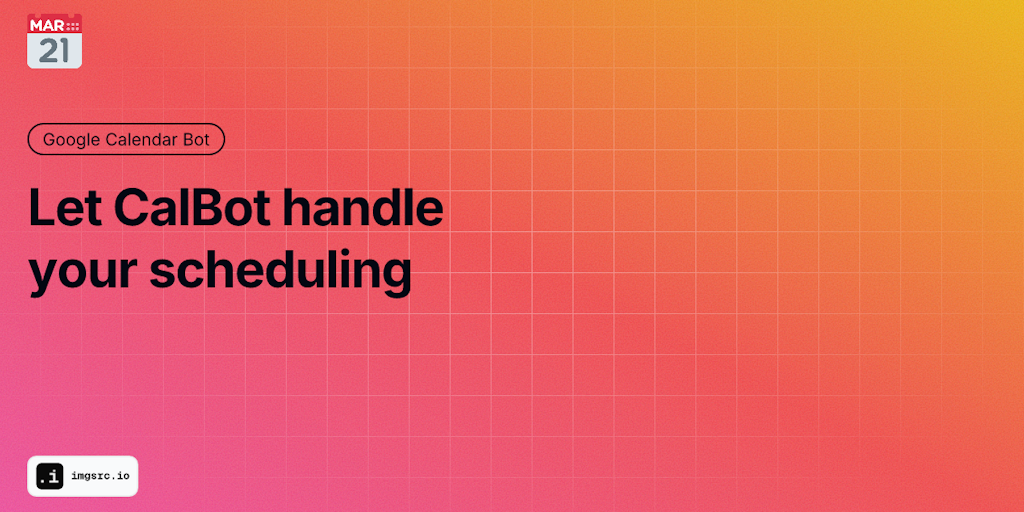 CalBot is your AI calendar assistant that works over email. CC it on email threads and it’ll suggest times, handle replies, and automatically create events for you. Never waste your time scheduling me