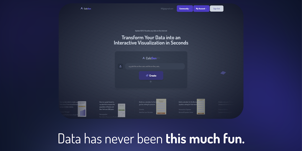 CalcGen AI - Beautifully interactive data visualizations. One prompt | Product Hunt