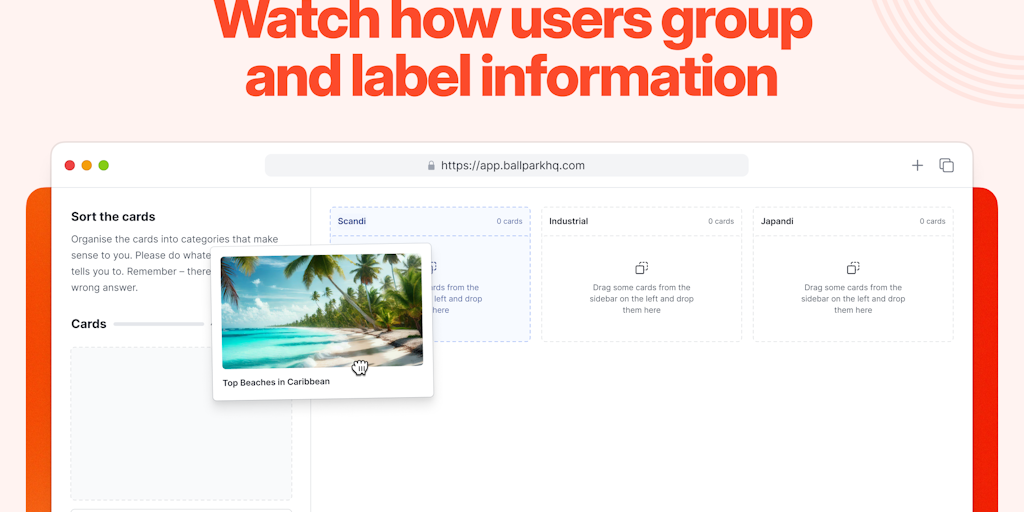 Card sorting by Ballpark - Improve your UX by watching how users organise information | Product Hunt