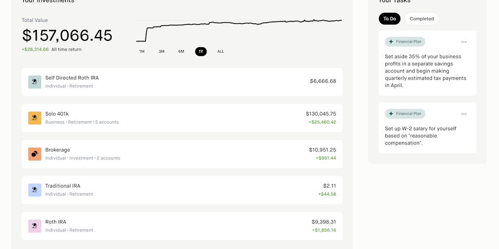 Carry is an all-in-one platform for tax-advantaged accounts, investments and strategy for business owners and high earning professionals. Use Carry to set up a Solo 401k, self-directed IRA, backdoor +