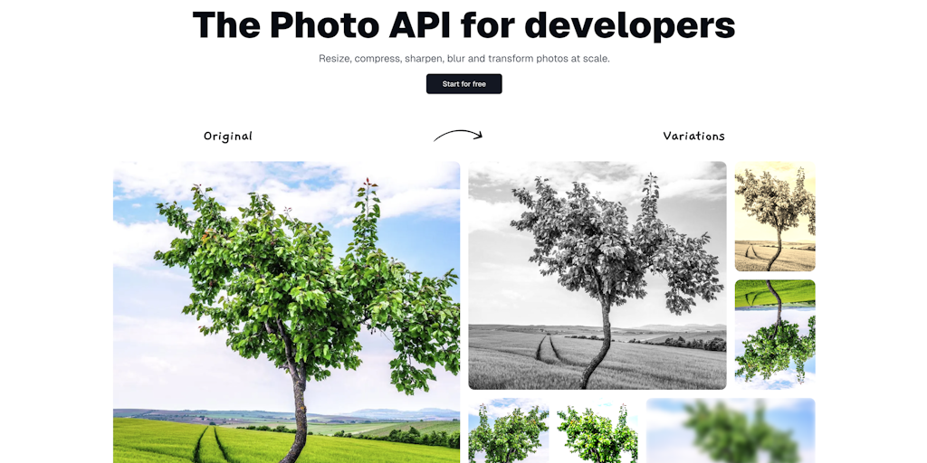 Resize, compress, sharpen, blur and transform photos at scale. Change photos with single API calls.