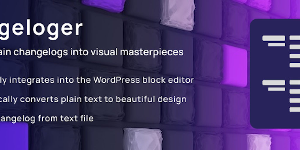 Introducing Changeloger, the WordPress plugin that transforms plain text changelogs into visually stunning formats within the block editor. Upload your changelog, and Changeloger converts it into an e