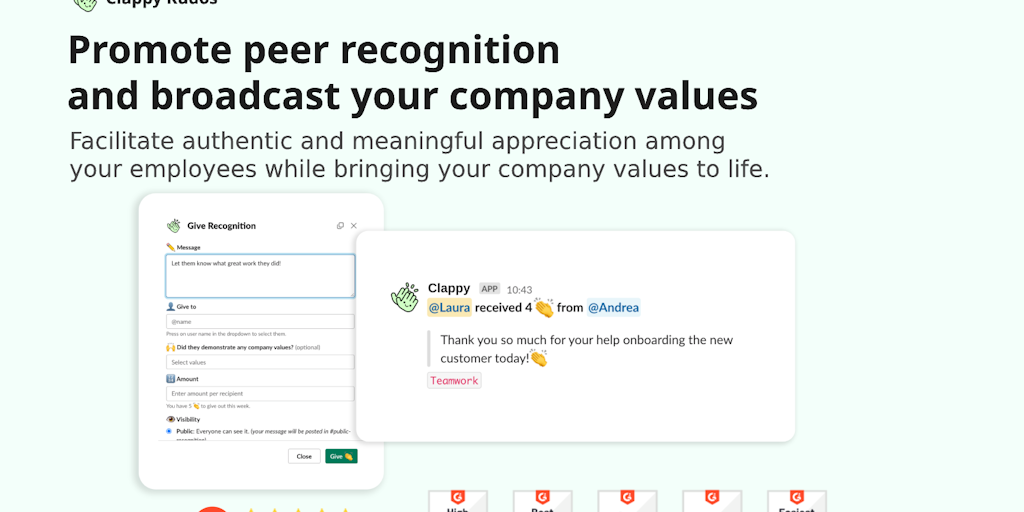 The simplest and most-affordable kudos app for Slack. Clappy is a must-have for every remote/hybrid company. Made with love by BuddiesHR.com 💜