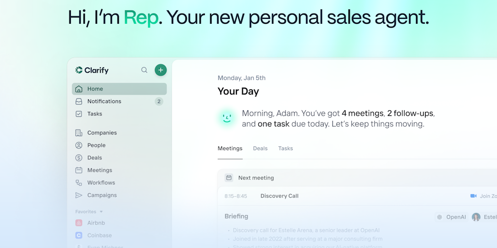 Clarify is the autonomous CRM that helps founders and early-stage sellers build pipeline, close more deals, and spend less time on CRM busywork.