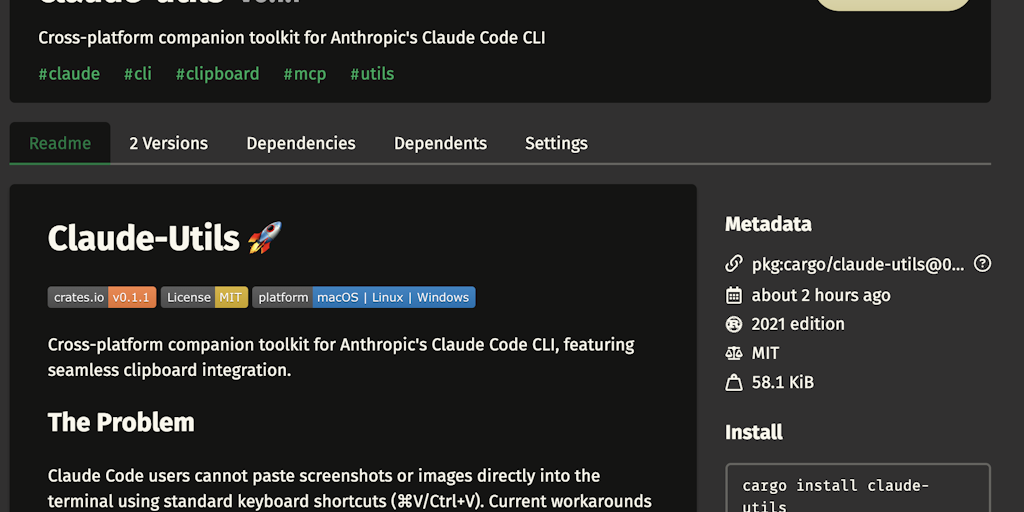 Ever tried pasting a screenshot into Claude Code? Yeah, it doesn't work. You need to save the file, locate it, and then drag it in. Every. Single. Time. Claude-utils fixes this.