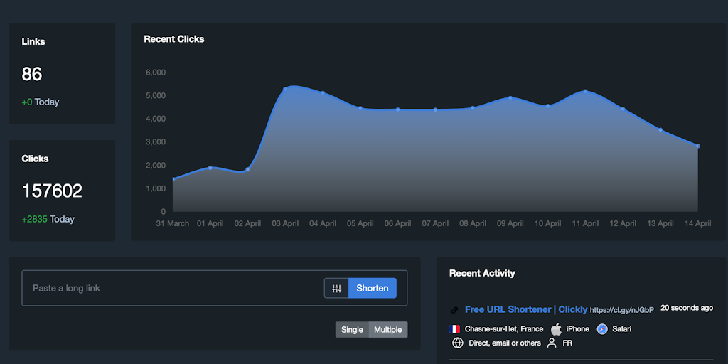 Clickly is a link management platform offering link shortening, branded links, link tracking, and analytics.