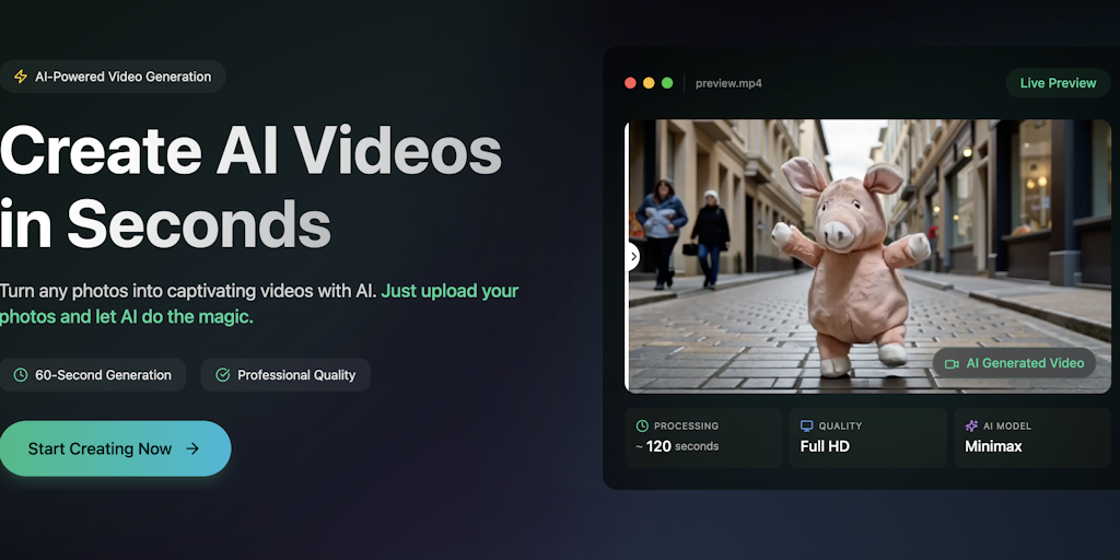ClipVideo AI: Transform photos & text into professional videos using AI. Create social content, ads & stories in minutes, not hours. Full HD quality, simple interface, developer API. Perfect for marke