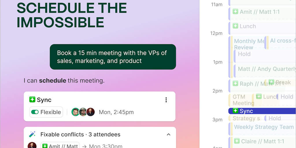 Shortcut manual and complex scheduling with an AI-powered intelligent calendar. Built on top of Clockwise’s advanced scheduling engine, Prism serves up more scheduling options, more quickly, than any