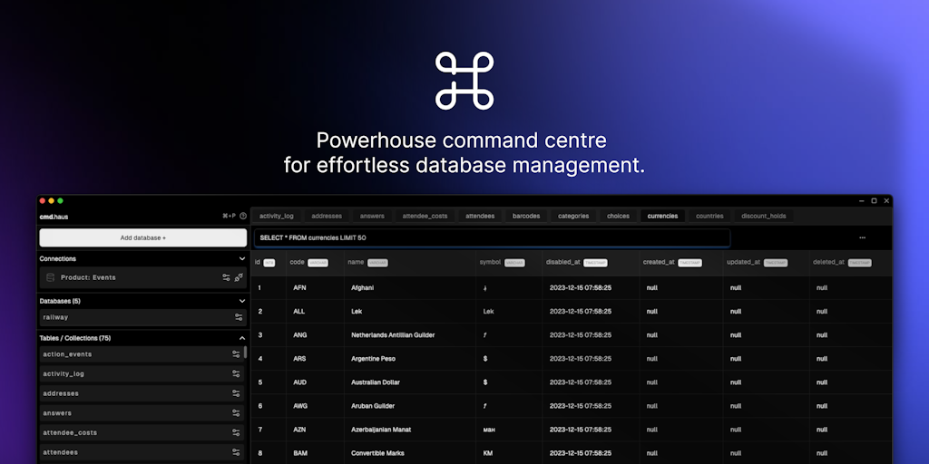 cmd.haus - Powerhouse command centre for effortless database management | Product Hunt