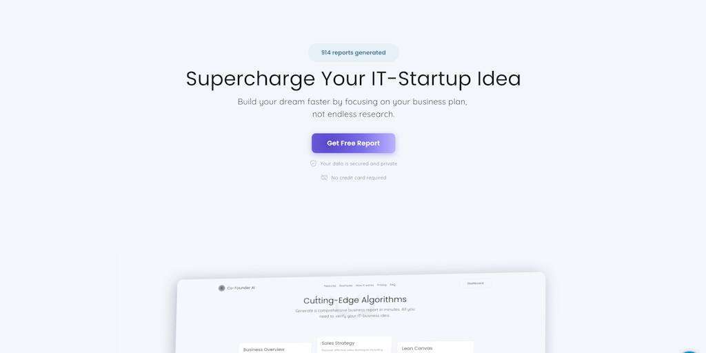 You've got this cool idea, but you're not an expert in tech, marketing, sales or business planing? Tired of chat bots? Co-FounderAI will create a 48-section business idea report that will help you ver