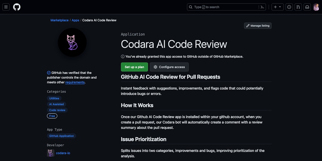 Codara Github AI Code Review App - Review Code 10x Faster with AI | Product Hunt