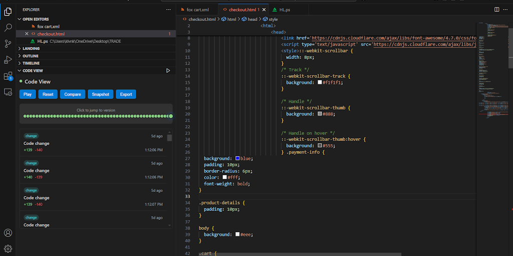 ✅ See how your code evolves 📸 Take snapshots before big changes 🔄 Restore with one click ⚡ Compare versions side-by-side
