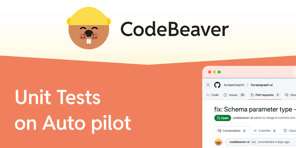 Put Unit Tests on autopilot. CodeBeaver analyzes your codebase, writes unit tests, runs them, and gives you a PR with the tests. Stop spending hours on test coverage. Start shipping features. Works wi
