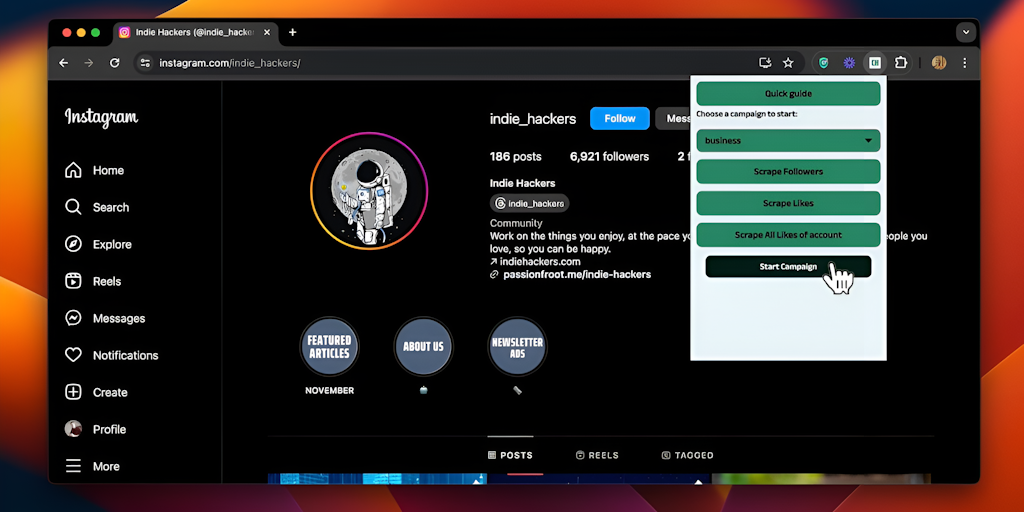 AI Cold Outreach automation tool that 1) Scrapes leads 2) Crafts a hyper-personalised DM based on their profile 3) Sends it automatically. It works for both Instagram and Twitter