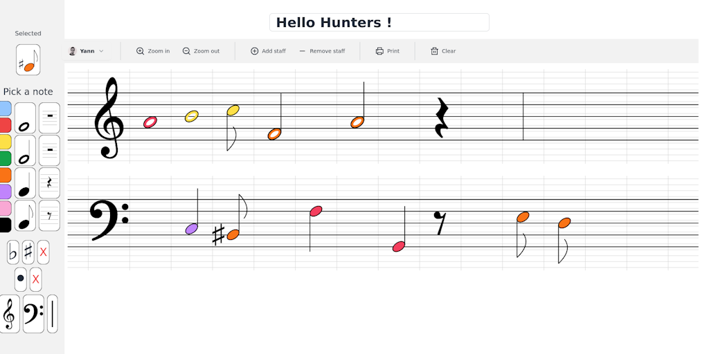 Create easily your own music sheet with colors, to help teaching music to children or adults. Perfect for the rainbow piano method !