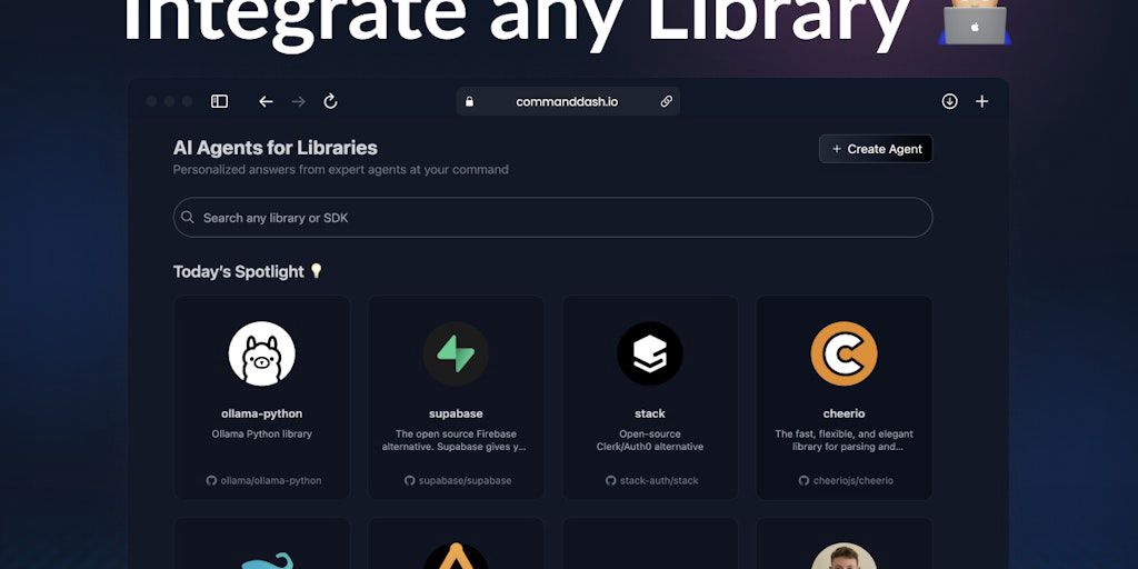 CommandDash is one-stop destination to integrate any open-source package or framework. As developers, leverage expert AI agents trained on GitHub of the libraries. Ask questions or generate customized
