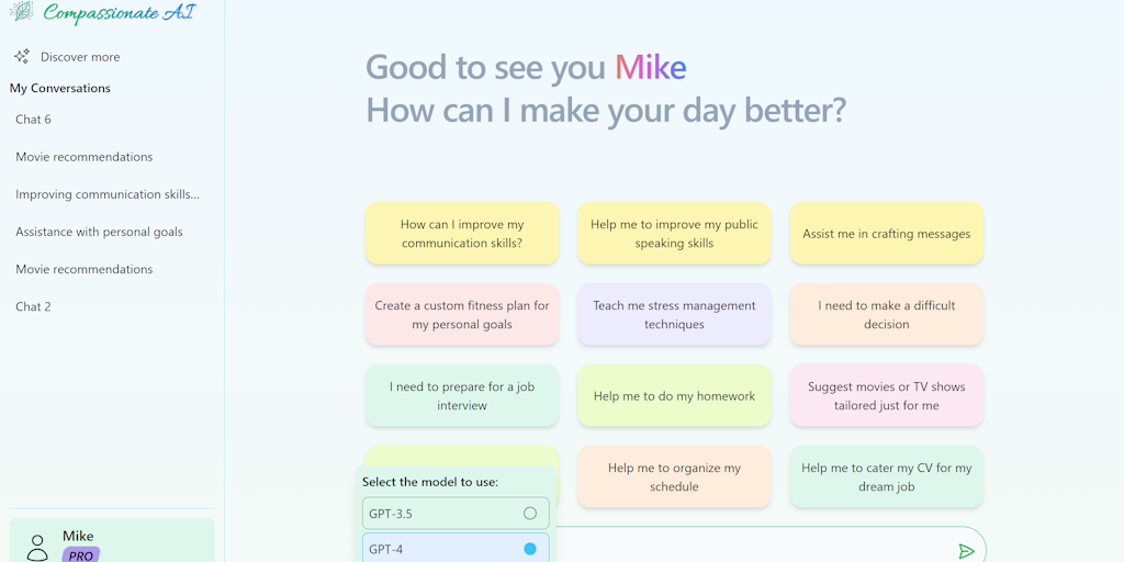 Compassionate AI is your personalized assistant, designed with context-aware conversations to uniquely cater to your needs. Remembering past interactions, it offers tailored advice, making every inter
