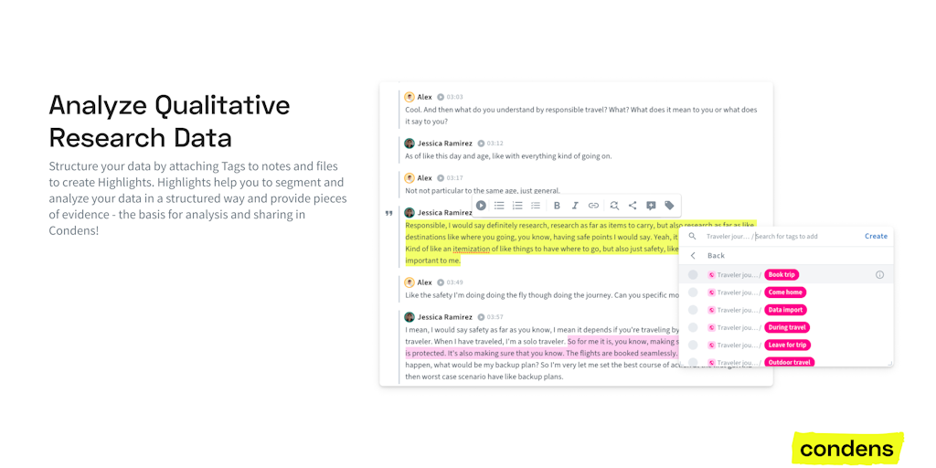 Condens is a centralized platform for storing, structuring, and analyzing user research data and sharing insights across your organization. It is scalable for enterprises, yet easy to use for small te