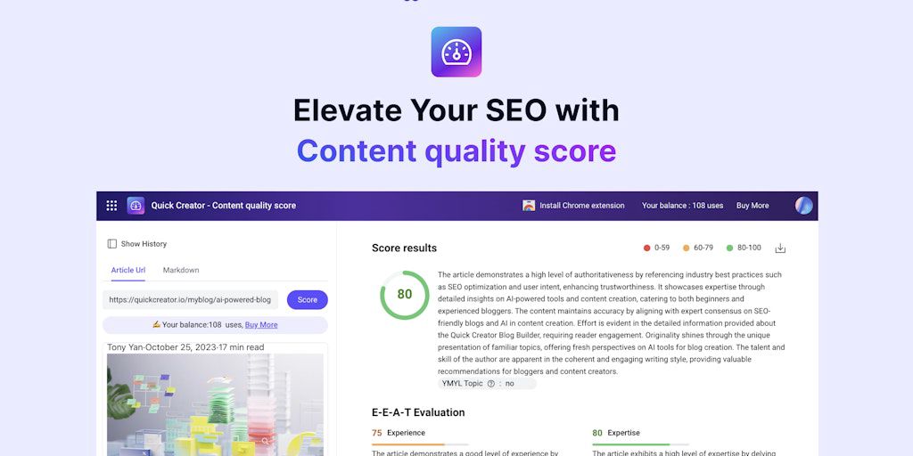 Content Score by Quick Creator - Scroing your content whith Google's E-E-A-T guidelines | Product Hunt