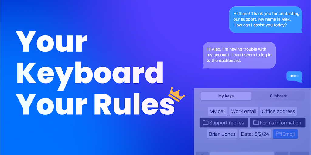 Your Keyboard, Your Rules 👑 Copied is a productivity keyboard app (iOS) that saves, organizes, and gives instant access to your text snippets and phrases. With clipboard history and quick copy-paste,
