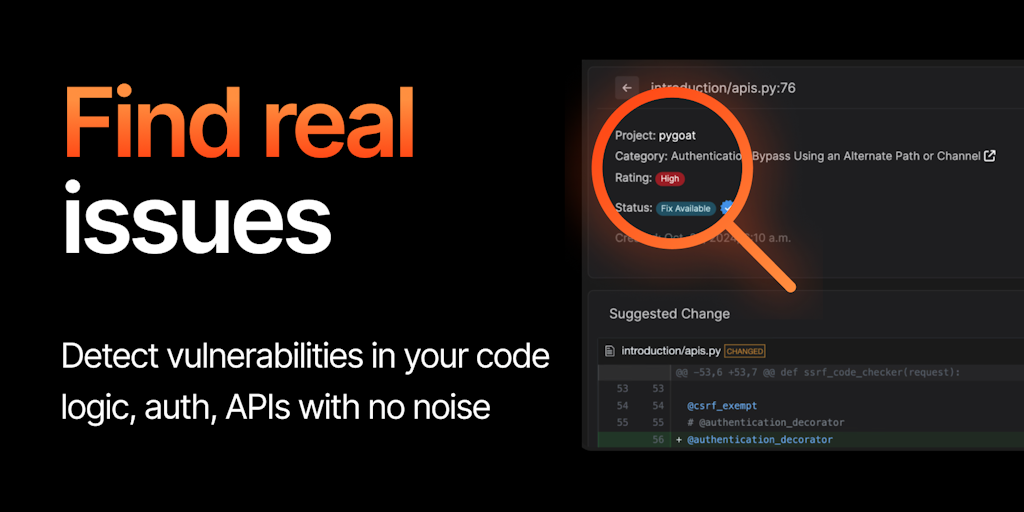 Corgea helps developers ship fast without worry about security. It is an AI-powered developer platform that automatically finds, and fixes insecure code. Sign up today for free to try Corgea.