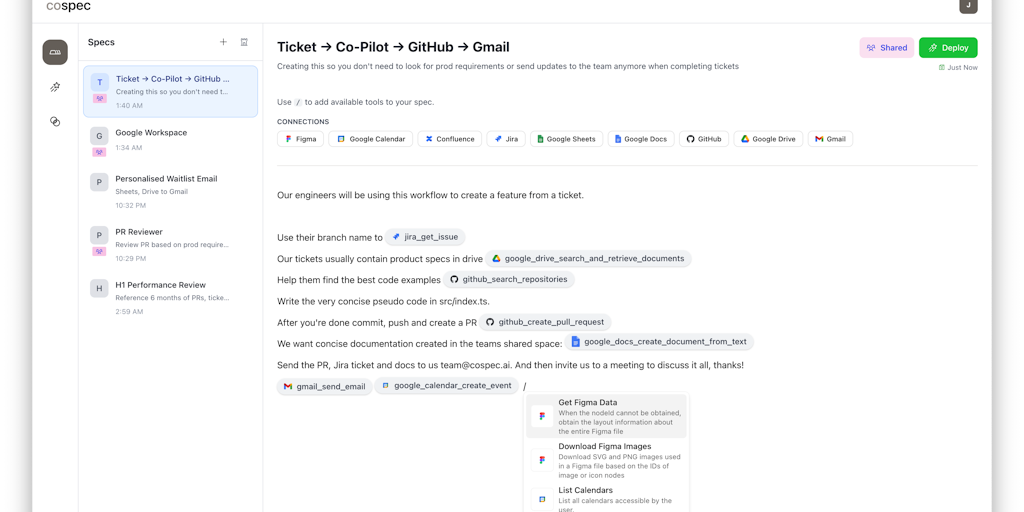 cospec: Write workflows in an IDE and deploy MCP servers | Product Hunt