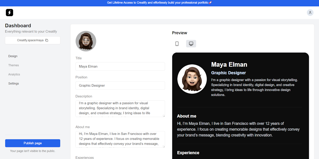 Creatify - Easily build your professional portfolio in seconds | Product Hunt