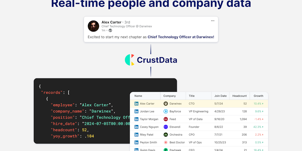 Crustdata - Real-time people and company data via APIs and webhooks | Product Hunt