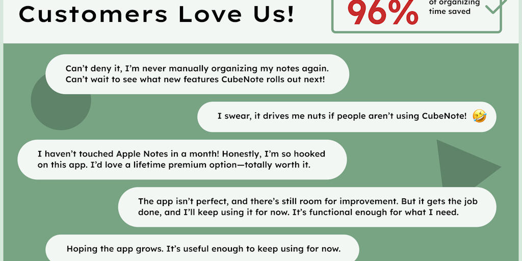 Think CubeNote is just another note-taking app? Think again! Here, your notes think for you. It auto-sorts notes into the right folders, saving users 96% of organizing time. Key info pops up as you wo