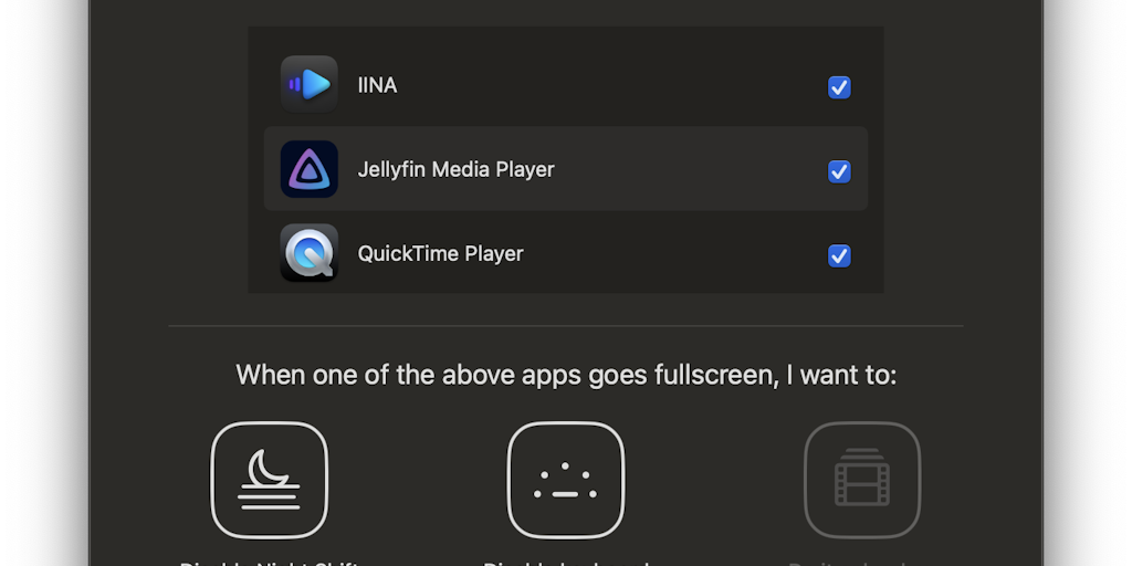 A macOS app to automatically disable Night Shift and keyboard backlight when watching a movie (or when any other app goes fullscreen) and put it back when you're done.