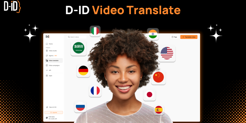 D-ID Video Translate converts videos into multi langs instantly from a single upload. Our AI tool translates the text, clones the speaker’s voice, and perfectly lip syncs at the click of a button. PLU
