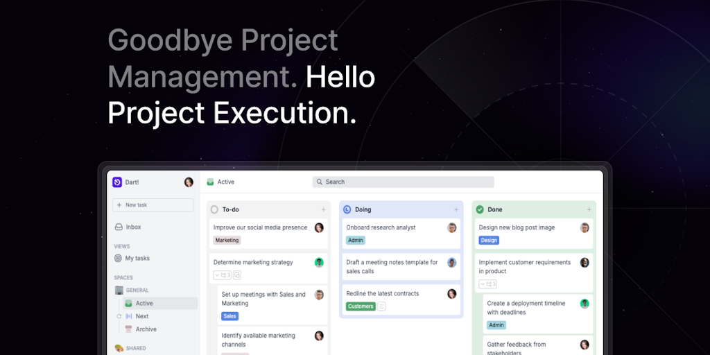 Dart is an intelligent project management tool that automates and enhances many standard PM functions. Dart's integrated AI can generate reports, break tasks into subtasks, detect duplicate tasks, dev