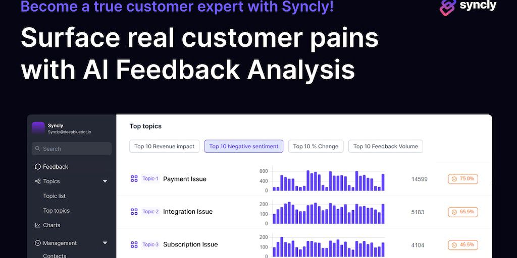 Syncly - Surface real customer pains with AI feedback analysis | Product Hunt